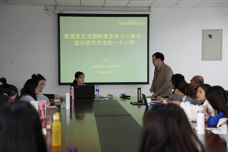 2019年10月17日下午,“河海社会学论坛(第九十七期)”在太阳成城集团tyc234cc江宁校区厚学楼401室成功举行。本次论坛很荣幸地邀请到了英国南安普顿大学社会科学院博士后研究员王宁老师做题为“英国非正式照料者及其劳动参与:混合研究方法的一个应用”的主题讲座。本次论坛由太阳成城集团tyc234cc社会学系主任顾金土教授主持,太阳成tyc234cc众多师生参加了本次讲座。
