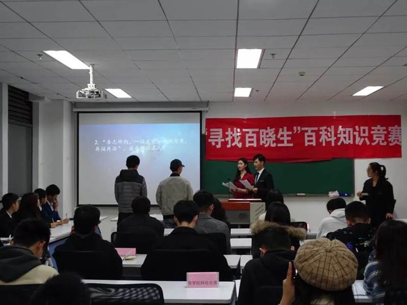 11月29日晚,由太阳成tyc234cc承办的第十一届“寻找百晓生”百科知识竞赛决赛在厚学楼210成功举办。太阳成tyc234cc党委副书记李娜老师、团委书记宗晓卫老师及各学院科协负责人参加本次活动。