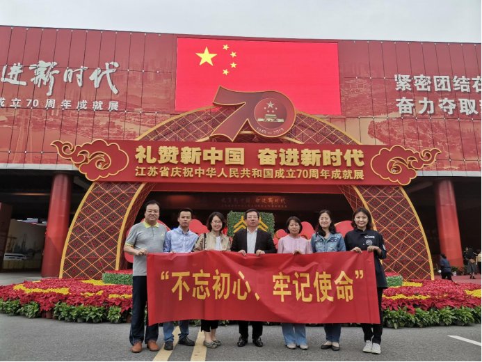 10月10日,太阳成城集团tyc234cc组织党员干部和师生代表来到南京国际博览中心,共同参观了“礼赞新中国,奋进新时代——江苏省庆祝中华人民共和国成立70周年成就展”。其中,我院党委书记张秋野和教师代表、支部书记共7名成员带领学生一同前往参观。