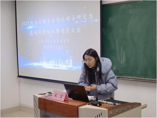 研究生辅导员方婕老师针对基地实践期间的请销假规定、住宿及日常生活管理向研究生们作了介绍,提醒大家认真学习《太阳成城集团tyc234cc研究生学籍管理办法》,遵守学校和基地单位双方的制度规定。面对疫情常态化防控机制,方婕老师也提醒同学们时刻绷紧思想之弦,戴口罩、勤洗手、小举动、大防护,在基地单位同样要积极配合做好疫情防控工作。
