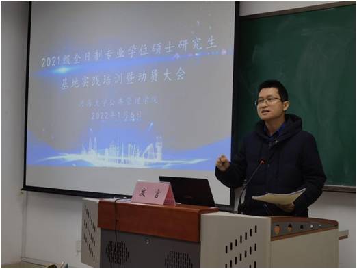 陈涛副院长对基地实践培训暨动员大会做出了总结。他向赴基地实践的同学们提出了四个方面的要求。第一是注重实践成效,要充分认识到专业实践的重要性,并学会从实践工作中积极挖掘学位论文选题素材,将专业实践与学位论文有机地融合在一起。第二是要提升学位论文质量,实践期间要与校内外导师保持密切联系。他指出,学位论文是一个探索性、创新性的过程,从选题、调研到撰写、打磨,均需要“工夫下得深”。第三是遵守规章纪律,增强保密意识,牢牢把守住纪律底线。第四是要注意安全,严格遵守基地单位的防疫要求。最后,他预祝各位同学的专业实践取得高质量的成果(供稿 田然)