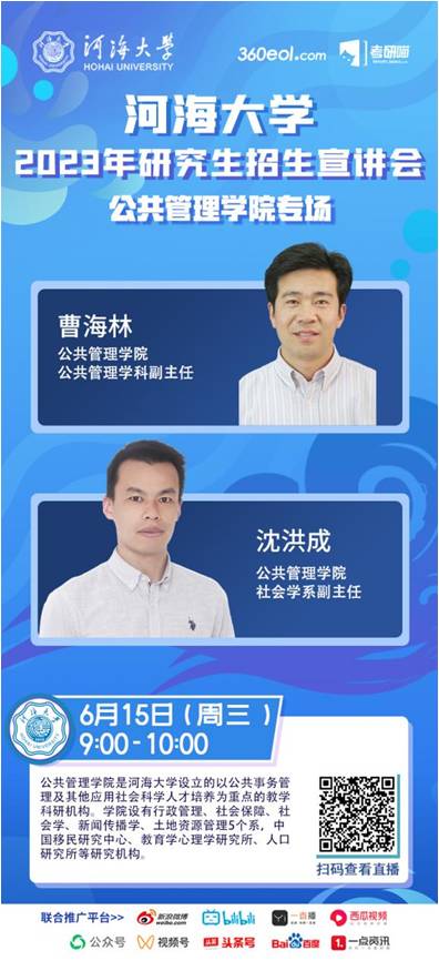 我院将于6月15日(周三)上午9:00-10:00进行2023年研究生招生在线宣讲会。
