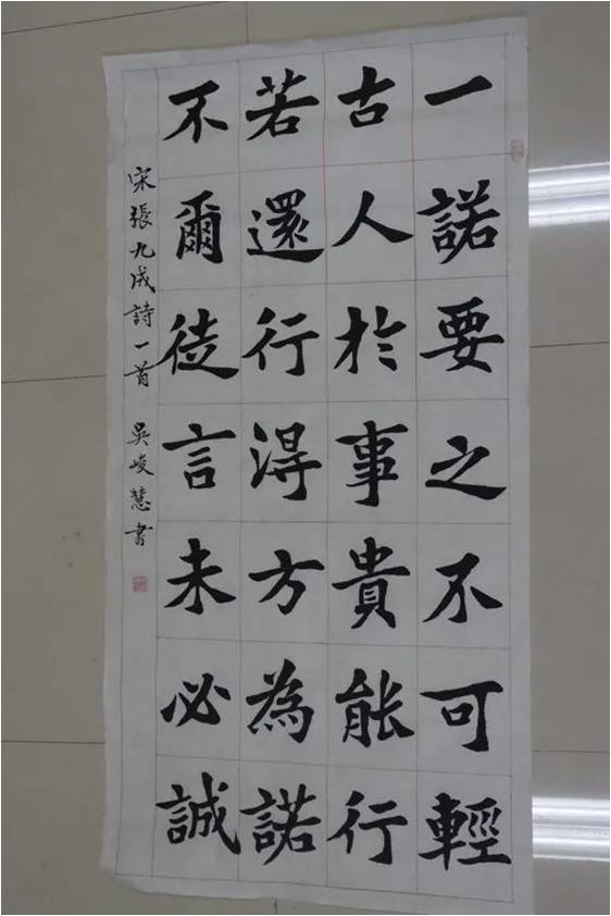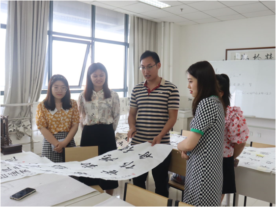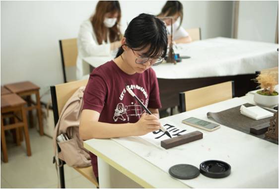 在优雅古朴的传统文化研习室,伴随着空气中弥漫着的阵阵墨香,走进书墨留香的书法世界:选手们挥毫泼墨,笔走龙蛇,尽情展示。他们把宣纸摊开,拿出毛笔,蘸上墨汁,稳稳在纸上落笔。“书道虽深,至诚可达”,同学们以身心赋予笔端,以妙笔书写青春,从字里行间体悟诚信美德、涵育感恩情怀,让诗意与墨香飘满校园。