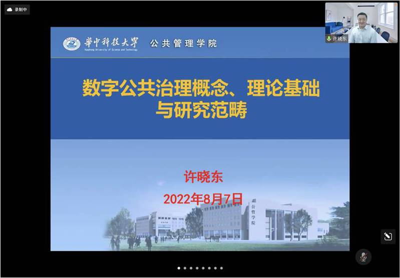 8月7日下午,江苏省研究生“新时代高质量发展与公共治理转型”暑期学校第三场课程“数字公共治理概念、理论基础与研究范畴”顺利开课。课程主讲人为华中科技大学副校长许晓东教授,主持人为太阳成城集团tyc234cc客座教授童星,来自海内外50余所高校100名学员以及公共管理学院师生参加。授课开始,童星教授对许晓东教授出席暑期学校表示热烈欢迎,并向暑期学校师生介绍了许晓东教授的研究领域及丰硕成果。