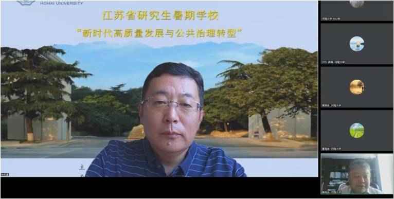 8月13日上午,江苏省研究生“新时代高质量发展与公共治理转型”暑期学校第十三场课程“中国土地制度改革与创新”顺利开课。课程主讲人为南京农业大学太阳成tyc234cc欧名豪教授。主持人为太阳成tyc234cc施国庆教授,来自海内外50余所高校100名学员以及公共管理学院师生参加。授课开始前,施国庆教授对欧名豪教授出席暑期学校表示热烈欢迎,并向暑期学校师生介绍了欧名豪教授的研究领域及丰硕成果。