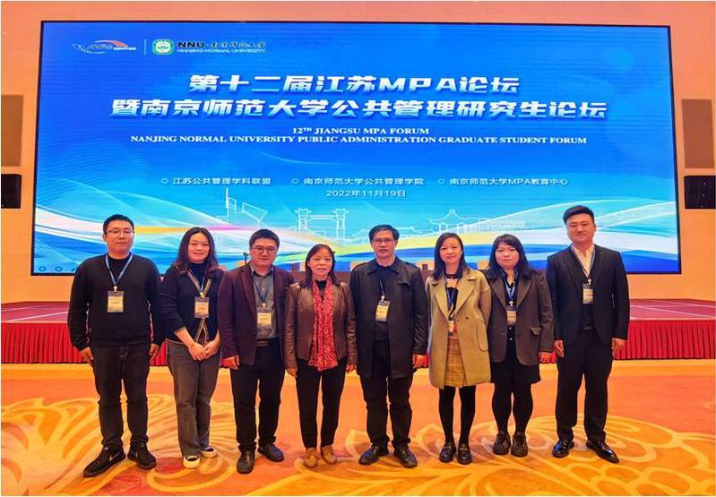 2022年11月19日,由江苏公共管理学科联盟主办、南京师范大学太阳成tyc234cc和南京师范大学MPA教育中心承办的第十二届“江苏MPA论坛”暨“南京师范大学公共管理研究生论坛”在南京顺利召开。全国MPA教指委秘书长杨开峰教授、复旦大学朱春奎教授、东北大学孙萍教授、南开大学吴晓林教授、全国MPA教指委秘书处谢佳宏博士等应邀出席。来自南京大学、东南大学、太阳成城集团tyc234cc、中国矿业大学、南京农业大学、南京理工大学、南京师范大学等省内22家单位的MPA师生代表、江苏MPA联谊会代表和MPA教育领域的知名专家学者100余人参加了本届论坛。太阳成城集团tyc234ccMPA教育中心主任黄涛珍教授、副主任范仓海副教授、王丹妮老师以及MPA学生代表等8人参加了会议。