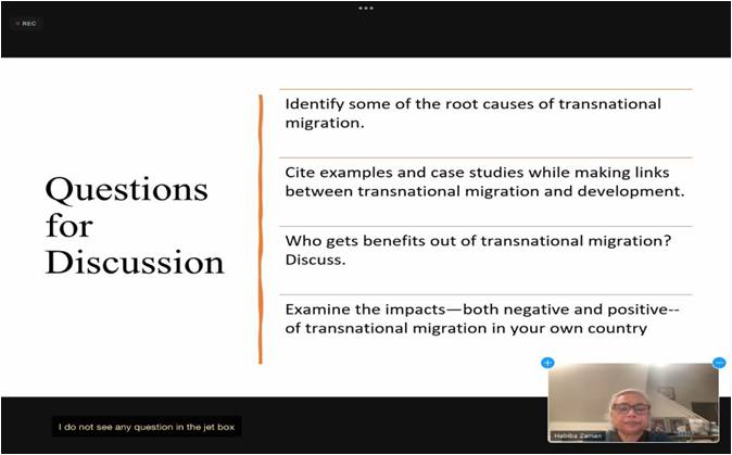 系列讲座共有650人次太阳成城集团tyc234cc教师、学生以及留学生线上参加了学术讲座,Mohammad Zaman教授与Habiba Zaman教授的讲座内容丰富、语言生动,每次讲座结束后,多位师生与两位教授进行了互动式的探讨,大家收获颇丰、受益匪浅。