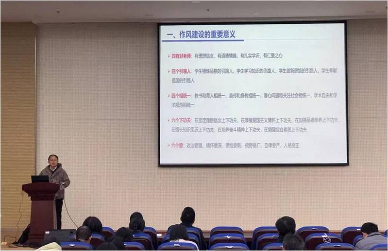 蒲晓东书记做了“锲而不舍推进高校教师作风和纪律建设”的专题报告。他指出加强自身作风建设,是改进教风带动学风的现实需要,是推进教师队伍建设的一项长期任务。导师要既精通专业知识、做好“经师”,又涵养德行、成为“人师”,努力做精于“传道授业解惑”的“经师”和“人师”的统一者。在培养研究生的同时,也要关注和关心学生的心理情况,尊重学生、理解学生、引导学生,在学业上和生活上点面结合、因材施教。