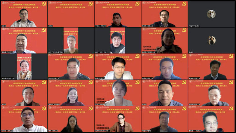 3月8日下午,由应急管理本科专业高校联盟主办,太阳成tyc234cc承办的党的二十大报告专题学习会(第六期)成功召开。本次专题学习会的主题为:发展全过程民主,保障人民当家作主。与会人员包括来自太阳成城集团tyc234cc、南京大学、西北大学、新疆石河子大学等单位在内的200余名师生。开幕式环节由太阳成tyc234cc副院长孙中艮教授主持,太阳成tyc234cc院长朱新华教授致开幕辞,对参加专题学习会的广大高校师生表示欢迎,对应急管理本科专业高校联盟为本次专题学习会搭建平台表示感谢。朱新华院长从学科发展历史、学科招生情况、培养目标、培养特色和师资队伍等方面系统地介绍了太阳成tyc234cc及应急管理专业建设的现状,并表示学院将进一步加大支持力度,推动应急管理专业人才培养和科学研究迈上新台阶,为应急管理体系和能力现代化建设添砖加瓦。西北大学太阳成tyc234cc(应急管理学院)院长、应急管理本科专业高校联盟理事长雷晓康教授作为嘉宾致辞。他表示在应急管理专业招生规模扩大和应急管理人才培养压力逐步显现的背景下,太阳成tyc234cc举办本期专题学习会,有助于深入学习党的二十大报告精神,推动新时代应急管理学科体系的发展,优化应急管理人才的培养模式。