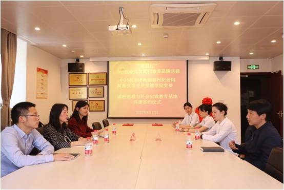 签约仪式上,院党委副书记朱志梅教授介绍了学院机构设置、人才培养、支部风采等相关情况。她指出,课程思政与社会实践教育基地的建立旨在通过校馆合作,以实境课堂提升红色文化育人效果,让学生在实践中传承红色精神,提升综合素养。此次双方携手共建课程思政与社会实践教育基地,搭建了我院开展师生思想政治教育、研学实践的重要平台,学院将以此次共建为契机,不断拓展馆校合作深度,加强双方沟通与交流,搭建党组织结对共建平台,形成“共建互促、资源共享、优势互补、协调发展”的党建工作新局面;同时,以高校学科人才资源推动红色精神的传承,不断提升馆校双方协同育人效果,打造实践教育新品牌。