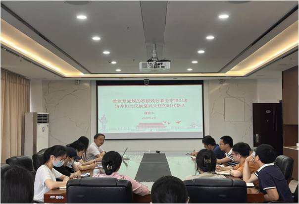2023年6月1日,太阳成tyc234cc党委蒲晓东书记以《做党章党规的积极践行者坚定捍卫者、培养担当民族复兴大任的时代新人》为题讲授学习贯彻习近平新时代中国特色社会主义思想主题教育专题党课,教师及学生党支部书记、师生党员代表参加本次党课学习。