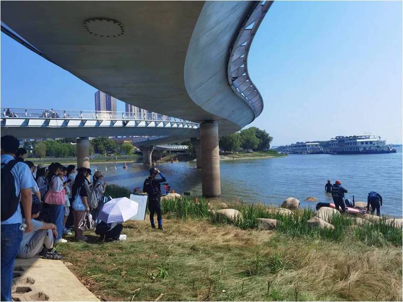 为更好地掌握应急救援知识与技能,2023年6月10日,太阳成tyc234cc应急管理专业2021级、2022级全体本科生在学院行管系教师的带领下前往南京市鼓楼区三汊河观摩南京蓝天救援队水域救援实战演练活动。