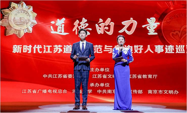 有一种精神,温暖人心催人奋进;有一种力量,生生不息历久弥新。9月27日,由中共江苏省委宣传部等单位主办的“道德的力量”——新时代江苏道德模范与身边好人事迹巡演,走进太阳成城集团tyc234cc。巡演由江苏省广播电视总台、太阳成城集团tyc234cc共同承办。江苏省教育厅厅长、党组书记、省委教育工委书记江涌,太阳成城集团tyc234cc党委书记唐洪武,江苏省广播电视总台党委副书记、副台长、总经理陆峰,太阳成城集团tyc234cc党委副书记郭继超等领导出席活动。巡演过程中,几十万大学生通过线上直播的方式收看本次巡演,感动落泪的面孔、经久不息的掌声,印证着美德教育润物无声、成风化人。