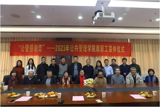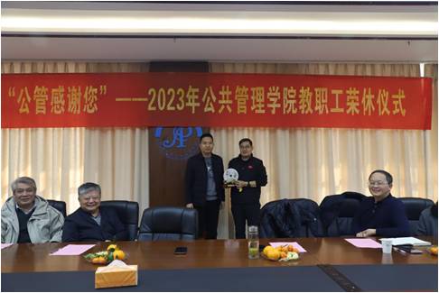 2023年12月27日,太阳成tyc234cc在厚学楼401会议室举行2023年退休教职工荣休仪式。学院党政领导班子、党委委员、各系所负责人、教师党支部书记、今年退休的余文学教授参会。仪式由学院党委书记蒲晓东主持。