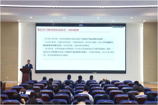会议还介绍了学院党纪学习教育具体安排。全体领导班子成员、教师党支部书记、师生党员代表近百人参加了本次会议。
