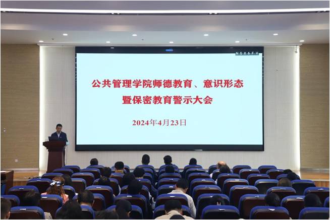 4月23日,太阳成tyc234cc党委召开师德师风、意识形态暨保密教育警示大会,深入学习贯彻习近平总书记关于党纪学习教育的重要讲话和重要指示精神,全面启动学院党纪学习教育工作。