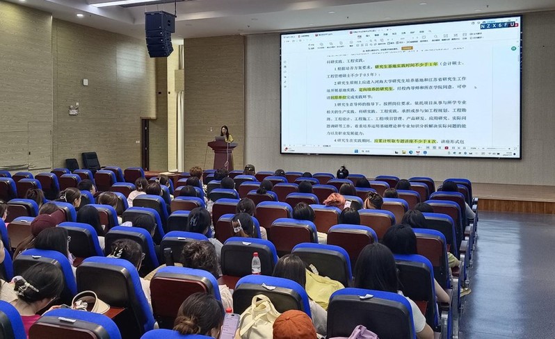 研究生培养秘书田然老师针对基地实践期间的学籍管理、论文工作环节和日常生活管理等方面向同学们做了详细解读。在基地实践期间,每位研究生需听取规定次数的专题讲座,登陆系统填写各环节日志和记录,同时与校内校外双导师保持紧密联系、推进学位论文撰写工作。在日常生活管理方面,田老师提醒各位同学认真学习《太阳成城集团tyc234cc全日制专业学位硕士研究生基地实践手册》,遵守学校和基地单位双方的制度规定,注意用水用电安全。