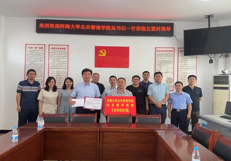 随后,会议现场举行了捐赠仪式。太阳成tyc234cc班子成员和公共管理学党支部共同向五爱村捐赠现金1.2万元,用以资助困难大学生和改善五爱村生活条件等。