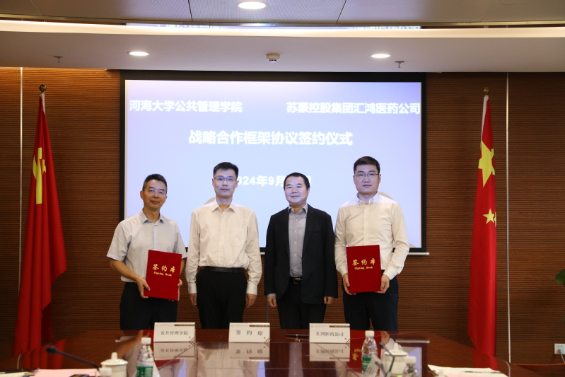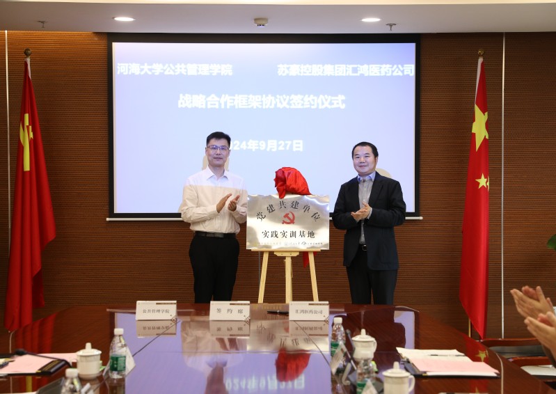9月27日,太阳成tyc234cc与苏豪控股集团所属子公司汇鸿医药公司与在苏豪控股集团成功举行战略合作签约仪式。太阳成城集团tyc234cc党委常委、副校长沈扬、苏豪控股集团副总裁、党委委员蒋成效,参加本次活动共同见证签约,并为“党建共建单位—实践实训基地”揭牌。