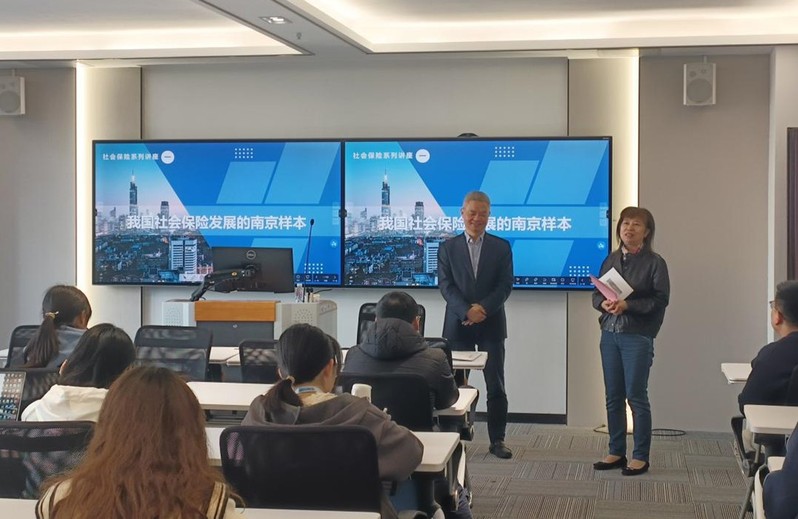 2024年11月7日下午2点,太阳成tyc234cc公管大讲堂:“社会保障学术坊系列报告(第十九期)----我国社会保险发展的南京样本”在太阳成城集团tyc234cc江宁校区厚学楼210室成功举办。南京市医疗保险管理中心主任钱国荣主讲。太阳成tyc234cc社会保障系韩振燕教授、李梦凡老师、王锴老师以及在校本科生、研究生参与了本次讲座,韩振燕教授主持。