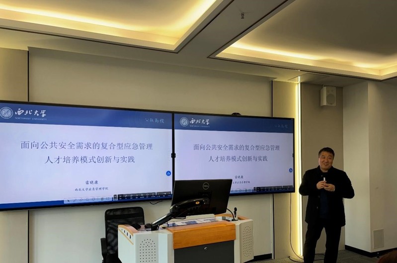 雷院长从时代要求与响应出发,提出面向新时代公共安全治理要求,应急管理是多学科知识共存、知识互嵌与互融的天生新文科;随后雷院长从应急管理专业生态群、科研推进、情境感知等方面分析了如何系统规划与构建应急管理人才培养;接着雷院长从应急管理课程与教材体系、能力培养体系、专业师资团队、学科建设与教学模式变革、应急管理教学资源交流平台搭建等方面分享了西北大学应急管理人才培养的探索经验。