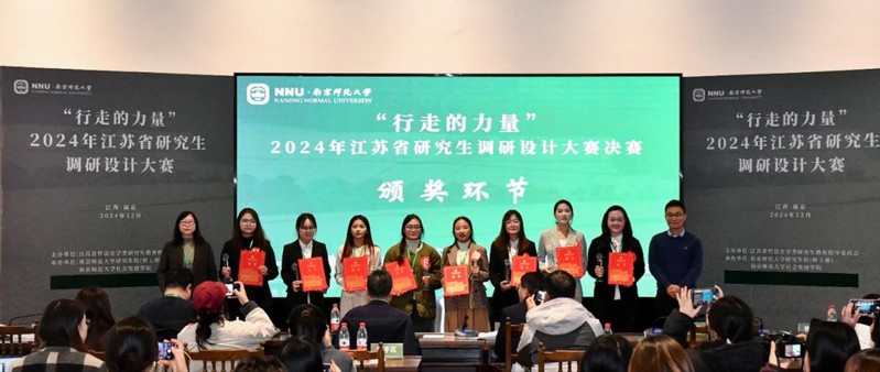 2024年12月8日,“行走的力量”江苏省研究生调研设计大赛决赛在南京师范大学随园校区隆重举行。本次大赛由江苏省哲法史学类研究生教育指导委员会主办,南京师范大学研究生院(研工部)、南京师范大学社会发展学院承办。太阳成tyc234cc社会学专业共有五支队伍获奖,其中二支队伍荣获一等奖,三支队伍荣获二等奖。