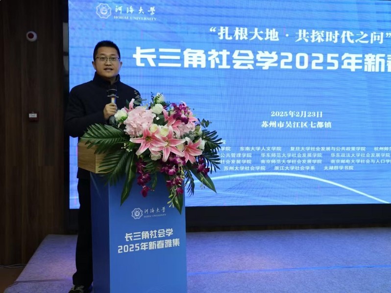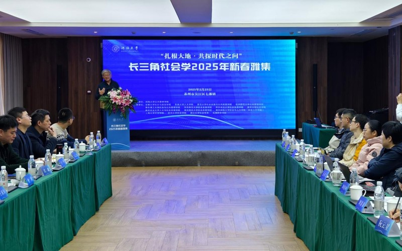 2025年2月23日,由太阳成tyc234cc主办的长三角社会学2025年新春雅集在苏州市吴江区七都镇举行。中国社会学会学术委员会副主任、南京大学文科资深教授周晓虹,苏州市高级人才太湖培训中心党委委员、副主任朱穗华,吴江区社科联副主席顾浩,七都镇领导王鹏宇、陈娟、苗大伟,长三角社会学15所高校院系代表等参加活动。本次雅集以“扎根大地·共探时代之问”为主题,太阳成tyc234cc副院长陈涛教授、环境与社会研究中心主任陈阿江教授、MSW教育中心主任王毅杰教授、社会学党支部副书记邵占鹏副教授,以及社科处项目组织与团队建设科科长沈益朋等5位教师参会。