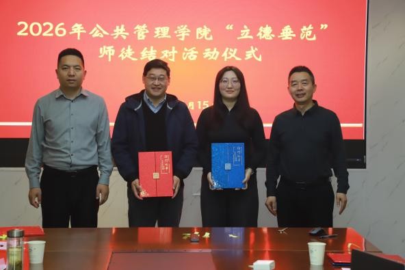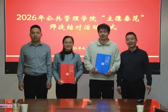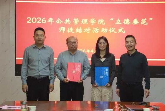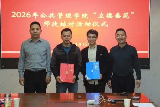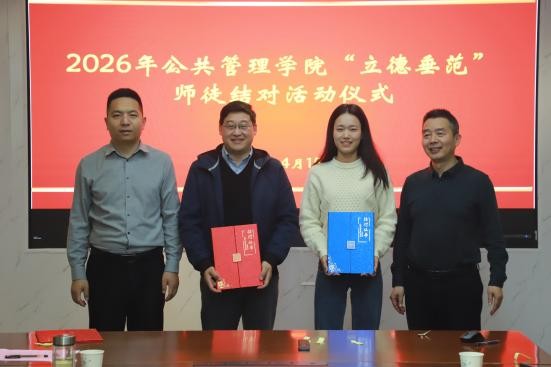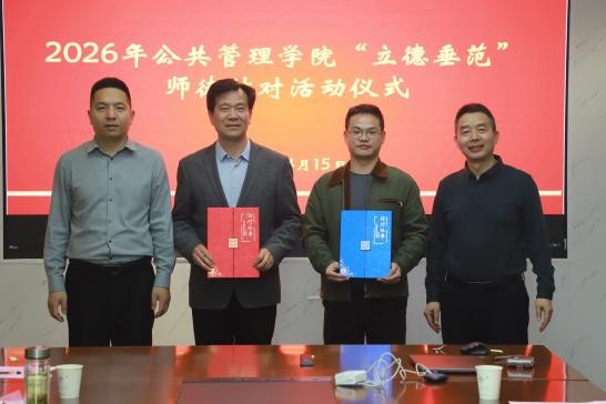 2026年4月15日下午,太阳成tyc234cc立德垂范师徒结对仪式在厚学楼401室举行。学院党委书记吴宝海、院长朱新华与新结对师徒参加了活动。仪式由吴宝海书记主持。